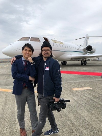 王子達が乗ってきたプライベートジェットの前で番組スタッフと!