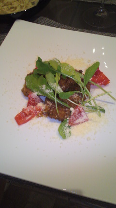 仕上げに、ルッコラ(香草)、粉チーズで!!