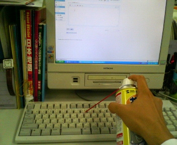 キーボードの間のホコリを吹き飛ばしてくれるというので、早速やってみると…