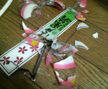 強風にあおられて、どうやら風鈴が落ちたようです。