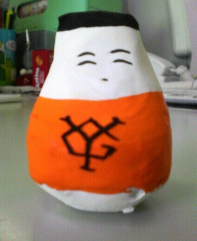愛くるしい小法師に、オレンジ色の帯とYGマークが付いていますね!