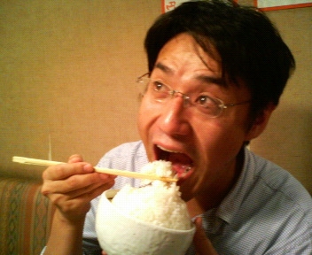 (山口放送の竹重アナ。がっつりマンガ盛をほおばります)