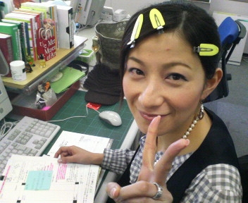髪の毛をとめて、デスクで台本に目を通されています。