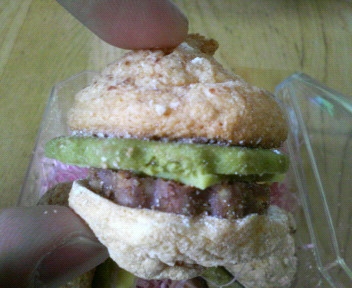 ハンバーガーの肉には生キャラメルを細かく砕いたアーモンド