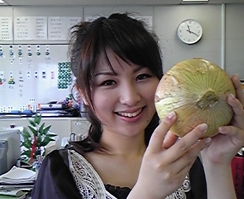 たまねぎが大きいのか、吉田アナの顔が小さいのか・・・