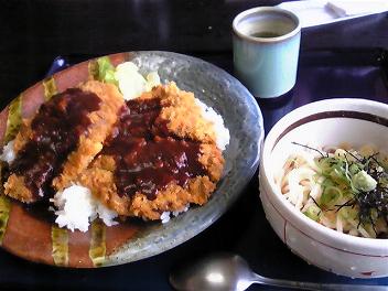 かつめしは、皿に盛ったご飯の上にビフカツ(または豚カツ)をのせ
