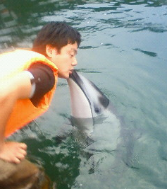 ちなみに、私・本野大輔はイルカを触るのは初めてです。