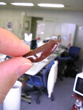柿の種をチョコレートでコーティングしたお菓子がアナウンス部に置いてありました。