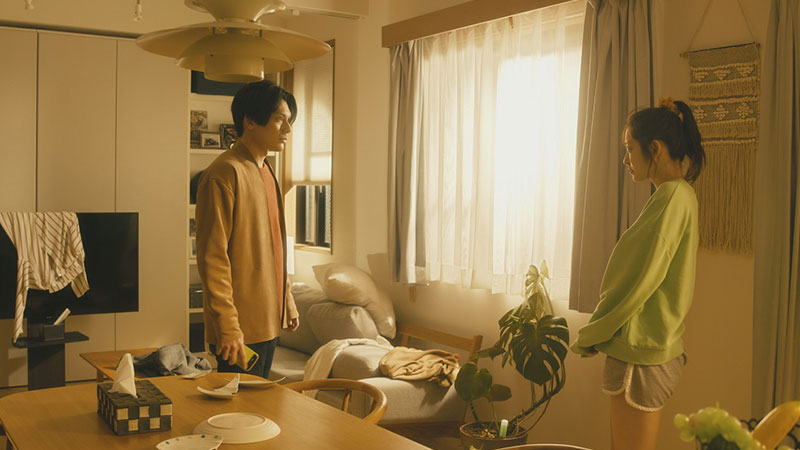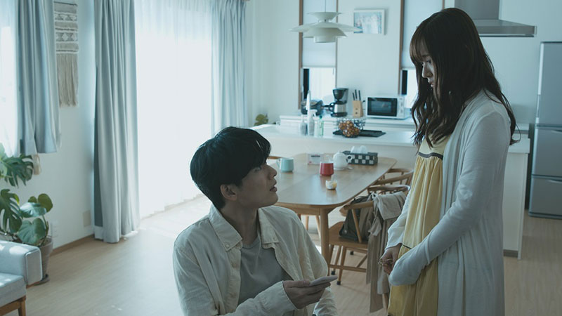 - 粒谷脩平(崎山つばさ)は今日も「フクブクロさん」の作品を読み、空想の世界を楽しんでいる。そうだ、今日の主人公は自分じゃなくて“彼女”(鈴木愛理)にしてみようか。 家の中でくつろぐひとりの女。女がベランダに出ると、夕暮れの街が広がっている。ふと下に目をやると見知らぬ男、粒谷がこちらを見ていて目が合った――。