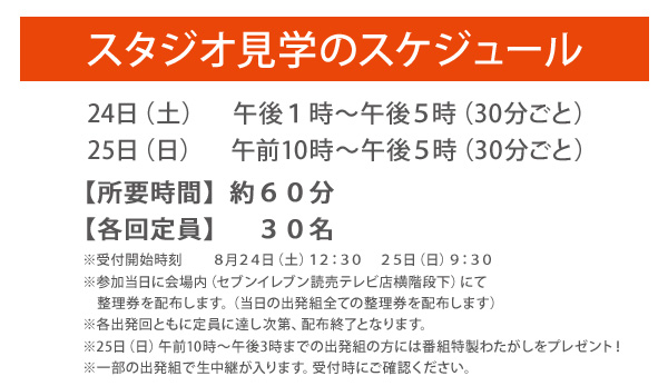 | 読売テレビ新社屋 | 12:00〜 | 〜21:00 |