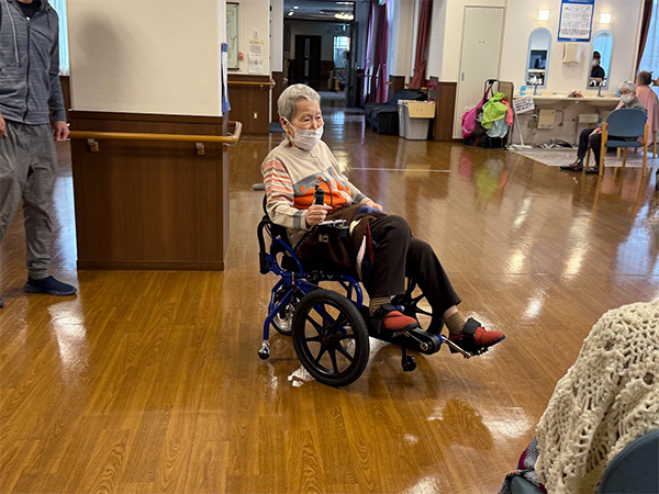 「手だと(車いすを漕ぐのが)重いが、軽くて足がすごく楽、小回りもきくし、動きやすい」