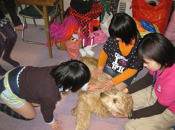 1995年の発足以来、災害救助犬による災害救助活動を行っており、東日本大震災や各地の土砂災害の現場や世界各地で活躍しています。また災害救助だけでなく、セラピー犬による活動もおこなっており、東日本大震災の仮設住宅も訪問しています。
