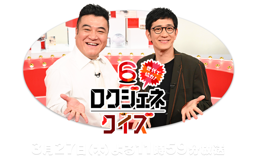 3月27日(木)のよる11時59分から放送される「6世代で協力!ロクジェネクイズ」。