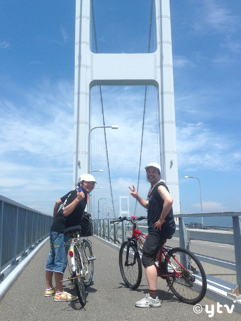 温泉を満喫して二日目は道後温泉→今治タオル美術館→今治のソウルフード焼豚玉子飯ランチ→来島海峡大橋サイクリング→潮流見学→大山祇神社→福山駅から新幹線、とかなりハードな充実メニュー。この日に特筆すべきはやはりサイクリング。現場でのメモ書きは「選べるレンタサイクルの中から、自転車はマウンテンバイクを選ぶ。橋を渡るだけあってまず上り坂を行くのが体力大丈夫かなあ、とけっこう大変に感じるけど行ってみると意外に大丈夫。好天気の夏空に気持ちがひるみがちだったけど、何でもそうだけど未知の事に挑む時には、どうしてもブルーというかネガティブな思考が先に立ちがち。とにかくやってみな、ということか。レンタルして荷物も持たずにできちゃう、サイクリング専用の高架橋ロード走行なんて、考えてみれば恵まれすぎてるでしょ。