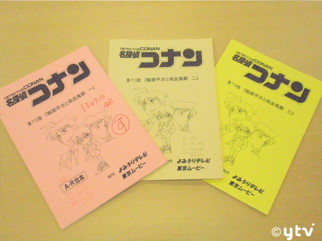 10月5日土曜夕方5時30分「宇宙兄弟 オリガ」そして6時「名探偵コナン」みなさまお待たせいたしました!いよいよあの猟奇?シリーズ「服部平次と吸血鬼館」がスタートです。4話に渡るこのシリーズのサブタイトルには漢数字の一・二・三・四を配列しました。7月の「漆黒の特急」シリーズ以来の長編ミステリーをじっくりお楽しみくださいね。この後のアニ民はゲストの富沢さんについて書かせてもらいます。番組最後のヒントエンドは珍しく毎回コナンと平次が絡み合いますよ。冒頭の写真はこのシリーズのアフレコ台本です。
