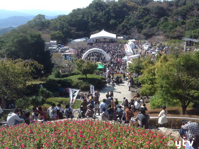 でも眉山って実際はロープウェイで登るほどの観光地スポット、そこに数千人を越えるお客さまが駆けつけること自体すごいことです。山頂から特設ステージに集まっている人たちを目の当たりにして、アニメを好きなファンたちの驚異的なエネルギーが頂上から放たれているのを体感。冒頭の写真1枚目は眉山山頂の特設ステージです。
