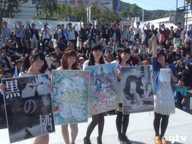 めでたくオーディションに合格した4人は次の日の「アニメミライ2014」の作品メインビジュアル発表会が初仕事となりました。それぞれが担当する作品のパネルを持って、作品紹介や監督からのコメントを読み上げたりしてもうリポーターの自覚いっぱい。今回の作品に初めて接する数百人のアニメファンを唸らせていましたよ。ちなみに僕もメインビジュアルを見たのはこの時が初めてでした。冒頭の写真2枚目は初仕事ステージ上のリポーターたち。右端は司会進行の高井舞香さんです。