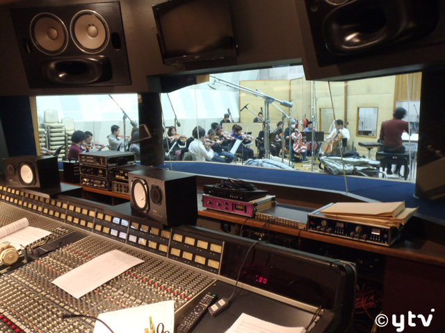 約束の時間に遅刻すること10分。早稲田にあるスタジオに息を切らせて訪れました。いくつかのスタジオがある中で、あれっ?一番大きなスタジオでやってるんだ?と思いドアを開けてのぞいたら、なんと総勢40名を超える大オーケストレーション!アタマの真髄に響くような荘厳な音楽が即全身を包みます。えっと予算とか大人の事情もイロイロあるのにこんなオーケストラ編成をしちゃって大丈夫?と心配する僕のご挨拶ツッコミをにこやかにかわし、相変わらず明るく軽やかな和田さんの指示する声がホント元気。