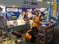 11月10日土曜日朝6時台の飛行機に乗って米子へ飛んだのが我らが「名探偵コナン」原作者・青山剛昌先生であります。ご一緒するのが少年サンデー編集長・鳥光さんとコナン担当編集者・小倉さんと僕。米子空港から車でまずは「国際マンガサミット鳥取大会」イベント会場へ。サミットと銘打つだけあって、世界各国のプロアマたちの作品がどれも力作で、青山先生も「あ、これうまいじゃん」などと一つ一つの作品をじっくり見ます。そして会場をにぎわせる地元の名産品やキャラクターグッズなどのお店もいっぱいで、あの北栄町「コナン探偵社」も出店してましたよ。(冒頭写真(1))