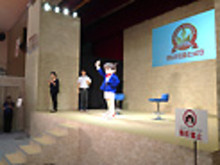 さて倉吉で行われているのが「国際まんが博 とっとりまんがドリームワールド」。これは鳥取県出身のマンガ家の水木しげる・青山剛昌・谷口ジローの3人をメインにして行われているイベントです。メインビジュアルも3つのキャラが仲良く並んでるもの。で、そのうちのコナンと鬼太郎の声をしているのが我らがみなみさん、と言うことで彼女のトークショー開催は必然でありましょう。23日のステージではみなみさんの声優になるきっかけやキャラクターの演じ方などめったに聞けない、というか長いお付き合いの僕も初めてなお話しもあったりしたトークショーでした。さらに選ばれた観客がみなみさんとアフレコ体験できたりと楽しい1時間でした。写真3はステージ上のコナン君です。
