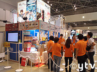 10時ちょうどの開場風景はやはり名物と言えるでしょう。拍手と時報をもってオープン。徹夜組含めて目的の限定キャラクターグッズを目指して、どうしても足早になるのは否定できませんよね。YTEのブースでは「輪廻のラグランジェ」の商品を中心に「緋色の欠片」から「WORKING」まで多彩なグッズが販売されていて、おかげさまでブース前には長い列ができていました。冒頭の写真は会場前のスタッフミーティングの様子と「ジャージ部魂」ポロシャツ。背中モデルはラグリン美人宣伝マン・とりりんです。