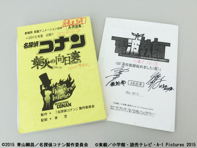 ちなみにこの第一話の収録は男性の出演者は神谷さん入れてわずか3人。あと13人すべて女性声優という、超華やかな現場をもって「電波教師」の始動と成りました。この日はリハーサルも含めてほぼ終日スタジオ作業となったのですが、原作者の東毅先生もスタッフ激励においでになってくれて、夜遅くスタートしたミニ打ち入りもとても賑やかな食事会になりました。冒頭の写真はコナン映画と電波教師の僕が使用したアフレコ台本です。