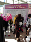さて、わーっと何かといろいろあってご報告が1ヶ月遅れちゃったけど、ここでサクラコンのことについて書きますね。アメリカはワシントン州シアトルで毎年開催されているアニメやマンガの祭典・サクラコン、今年の会期は4月6日から8日でした。僕は自分の都合もあって、6日9時過ぎに現地空港に到着します。当日僕が担当のプログラムが12時スタートと聞いて急いでホテルにチェックイン。何とかパネルの準備をして会場に向かうと、そこは見事に明るいコスプレワールド。自分の好きなキャラクターなり好きなコスチュームに身をまとい、現地の人はじめ全米からの人々が思い思いに自由に行動しています。冒頭の写真は会場の様子2枚と宿泊したホテル前にあるちょっとびっくりなビル。そして現地のコナンファンとの「真実はいつも一つ」ショットです。