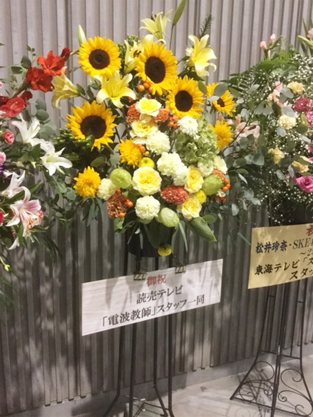 抽選となってしまったお二人のステージチケットは入手不可ですが、京まふは他の多くの展示ブースも魅力いっぱい!特にytvブースはいろんなコナンや金田一も含めていろんな趣向が満載になっていますので、おいでいただける方はぜひ顔を出してくださいね。そしてあと2回となった「電波教師」、こればかりはどうか絶対見逃さないようにお願いします。冒頭の写真は神谷さん、松井さんそれぞれのライブお祝いスタンド花です。特に神谷さんへの東毅先生のがすごいですね。