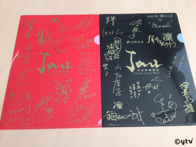 毎年恒例となりました、「(協)日本俳優連合 東日本大震災復興支援 チャリティーイベント2015」東京・西新宿で開催されました。実はこのイベントに参加するには往復はがきで申し込んで抽選で当たらなければなりません。それもそうですよね、イベント出演はもちろん、模擬店やスタッフも表から裏方までみ~んな現役人気声優なんですから。みなさんスケジュールに都合をつけて自主的にボランティアで活動してるんですが、例えばコナン役の高山みなみさんは、カフェ担当として数ヶ月前から準備を始めて、いろんなアイデアで参加してくれるファンを楽しませようとしています。そのカフェでは高山さんはじめ山崎和佳奈さん・小山力也さん・松井菜桜子さん・日髙のり子さん・杉本ゆうさんら「コナンオールスターズ」といった華やかな面々が勢ぞろい。ボクも顔を出して勧められるがままにエゾ鹿ストラップや豪華な声優サイン入りクリアファイルなどいくつかゲットしましたよ。冒頭の写真は会場の様子と2枚のクリアファイルです。