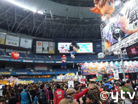 そしてそれに応えてくれるかのような、サンデーブースの特設ステージ上の高山さん[31]の勢いがすごい!まだ最新作「11人目のストライカー」の内容を、実はあまり知るタイミングじゃないのにこの盛り上がりは何だ?(写真(3)、ステージにアドバルーンを入れこむと傾けないと写りません)さらにせっかく買ってくれるんなら少しでもファンの人と触れ合おう、とばかりに特設ブースで映画の前売り鑑賞券の販売もかって出てくれて、さすがは冬の日意外に寒かった会場もおかげで熱く盛り上がっていきました。これからWHFは東京・名古屋・福岡とイベントをまわして行く予定ですが、すべての会場でみなみさんは参加してくれるそうです。地理的に可能な方はHP上で情報をチェックしてみなみさんに会いに行ってくださいね。