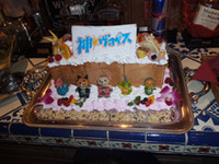 そして主演の梶さん羽多野さんであります。「久保寺声優学校」の生徒たち11人を引き連れて佐野監督含めて総勢14名前後もの巨大舞台挨拶となったわけですが(冒頭の写真は土曜日のもの。2枚目は打ち上げでの特製ハニートースト、映画上のみのキャラクターお菓子が見事)、個性をアピールする生徒たちもさることながら、この二人の水を得た魚のような掛け合いが最高でした。わずか1ヶ月に満たない映画収録期間にどのような心身共の交流があったのか、作品のテーマでもある仲間意識…ちょっとうらやましい空気さえ漂ってたよなあ。「神ヴォイス」ならぬ「梶ヴォイス」発言に至っては関係者一同ツボを見事に突かれた思いでありました。