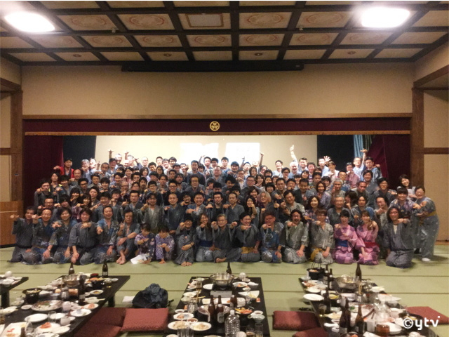 題して『祝‼放送800回突破&20周年突入!TV「名探偵コナン」決起集会』。主催は前述の2社にYTVを入れた3社ですが、とにかく現場のスタッフが支え続けて実現できた快挙であります。この宴会は「参加メンバーはみな平等!」とばかりに、全員その施設の浴衣に着替えての参加となったのです。冒頭には3社のトップの挨拶をいただいたものの、後は大体食事などの歓談時間。もちろん乾杯は青山先生!そして山本監督を始めとした制作スタッフや、高山みなみさんを始め参加したキャストの皆さん挨拶がありました。でも会場が広い畳敷きで、それぞれのテーブルに座席指定された座布団がある宴会なので、ずっと仕事をしてきてもなかなか会話が出来ないようなメンバーが、それぞれ自由に席を移動して話したりで、それは楽しく賑やかな歓談時間でしたよ。