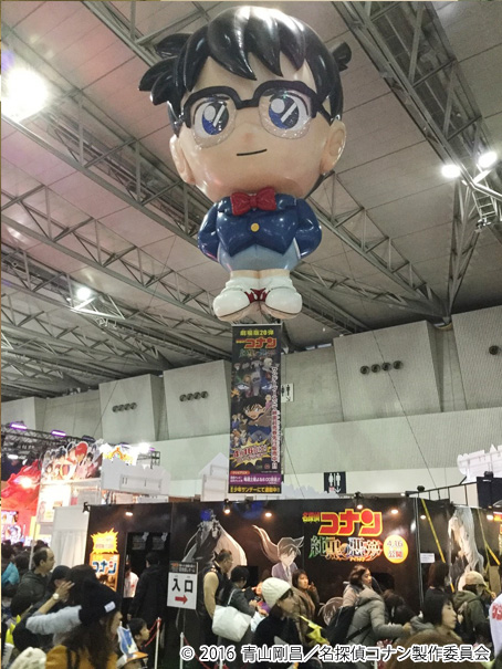 それにしてもステージを見つめながら思います。毎年この時期に開催されているこのイベントにコナンスタッフとして参加してきて何年になるでしょう。その積み重ねでTVアニメ20周年&劇場版20作という節目に到達出来たことに感慨深いものを感じます。見上げればWHFに限らずアニメジャパンなど大きなイベントにおいて毎回会場でボクらを迎えてくれる大きなコナン君アドバルーン。その大きくかわいい姿をじっくり見上げながら、この20周年に向けてさらにいっぱい楽しくがんばろうと、知らず知らずのうちにコブシを握って誓っていました。