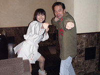 著名なアニメーション監督・山村浩二さんの新作「マイブリッジの糸」も観ることが出来ました。僕には思いもつかないそのチャレンジ魂たっぷり、セリフなしの渋い映像に今後のアニメーションの可能性を感じます。そしてトークの最後までお付き合いしてくれたプロダクションI.G.石川社長[56]とお別れしたのが4時(28時)前でしたか。こうやって都会のど真ん中でど深夜まで文化的?な活動に身をおけた喜びみたいな感覚を大事に抱いて帰ることが出来ました。おいでいただいたお客さま、スタッフのみなさま本当にありがとうございました。冒頭の写真は安野さんとキズナっぽく2ショット。