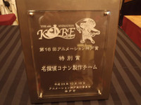 先週お話しました「輪廻のラグランジェ」製作発表の日曜日に、僕にはもう一つのミッションがありました。アニメーション神戸で「名探偵コナン」が特別賞を受賞、その授賞式があったのです。ラグりん発表会場が横浜で、そこから速攻で神戸に移動。おりしも日本を代表する二大港町を一日で渡り歩くことになりました。