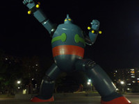 結局僕とチャップはその日に帰京しないことにして、チャップの言い出しでパーティー後に向かったのが新長田。僕も初めての訪問地にバーンと立っているのが『鉄人28号』であります。いやー大きいなあ。とにかく僕はこの作品にまさにオンタイムの世代。あのモノクロのアニメはもちろん、連載されてた月刊マンガ誌「少年」の匂いも詳しく思い出せます。阪神大震災から復興をとげる努力をしている街に「ガオーッ!」と応援する叫びが、そのまま東北の人々にも届いたらいいな。なんて、鉄人に触れながらついそんなコトを感じたのは事実です。3枚目の写真は夜の鉄人28号です。