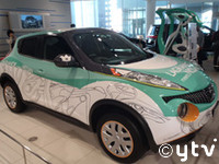最後に僕のステージ上での発言です。「本日この場をもって輪廻のラグランジェ完全始動!このスタッフたちと日産とのコラボで、日本のアニメーションの歴史が変わります!」写真はリハーサル時の舞台でのヒューマンスケールモデル、幕の後ろで登場を待つモデル後姿、実際に日産本社のショールームで展示されてる“ジュークのアートカー”とモデル(展示は11月11日までの予定)。