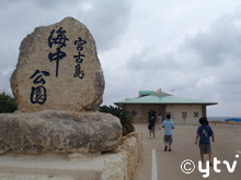 その中でも「宮古島海中公園」は今年7月にオープンしたという最新施設。なんと海の底に大きなコンクリートの箱を並べて、窓から天然の海をいわば海中から見学する、と言うものです。写真はその建物入り口と窓が並んだ展望室の様子。海面を海中から眺めることもでき、水族館のようでちょっと異なる海中の世界は、立ち去りがたい魅力にあふれていました。他のポイント旅行記などもろもろは次回に書かせていただきますね。