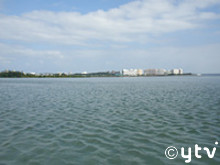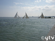 夏が過ぎ行くような海の写真は東京・江戸川区、葛西臨海公園の水族館から。建物の屋上人工池越しのヨットと東京ディズニーリゾート遠景です。