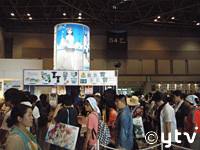 YTEブースの物販メインは「花咲くいろは」と「WORKING!!」。どちらともかなりな人気作品なので、ブースの前にはちょっと列整理が大変なほどのお客さまでごった返していました。だいたいコミケに来るとその各社の“列サバき技”に驚きます。その場では収容できないお客さまを別場所に並べて、タイミングよく連れてゆく様はちょっと職人的。お客さまの方も心得たもので何のトラブルも無く秩序正しく順調に物事が進行していってる感じです。冒頭の写真はYTEブースの様子です。