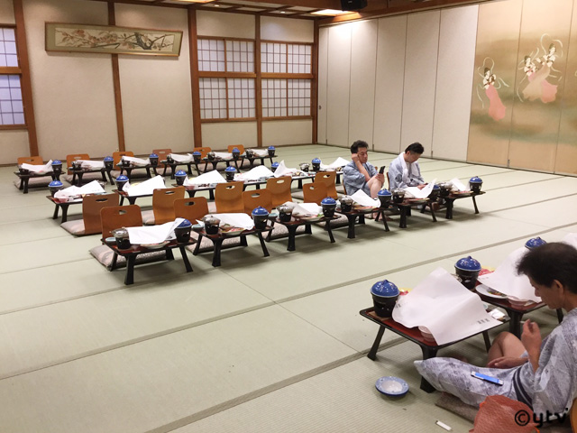 宿泊は戸倉上山田温泉、川と山にはさまれて風情あふれる温泉街でした。恒例大夕食タイムには旅館の大広間に御膳が規則正しく並び、期待通りの「これぞ温泉旅館宴会だ」っていう感じ。楽しく美味しく大騒ぎして、カラオケ2次会を経て、宴会部屋でさらに楽しくおしゃべりしまくり。実はボクは温泉に何度も入るのが大好きで、今回は夜2回朝2回露天につかりました~。、いやあ温泉ってホントに良いもんですね。