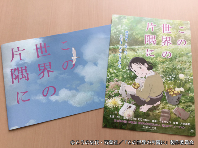 これは監督の片渕須直さんの演出やキャラクターデザインの松原秀典さんが描くセンスもあるのですが、大きくは劇中の半分以上をしゃべってるすずさん演じるのんさんの力量なんだと思います。実は聞いた最初はあまりそう思いませんでした。でも観続けていくうちにキャラクターにのんさんが追いつく、というよりのんさんにキャラクターが乗り移っていくという感じですか。あのボーッとした時の表現の素のチカラ、これはあまり経験したことがない感触でした。この作品11月12日に全国公開されます。写真はチラシとマスコミ用プレスです。