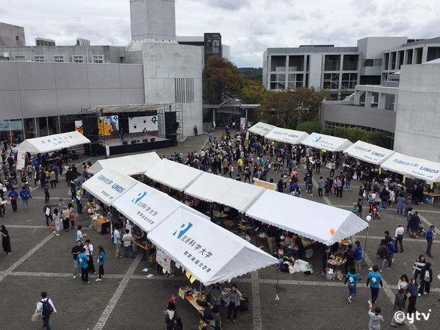 さてその現役女子大学生の10名がオーディションで取り組んだのは3つの課題。急なニュース原稿を読んだり、歌手の紹介をしたり、なかなかハイレベルなクリアをしていきますが、3つ目の食レポは面白かったなあ。カメラの前で、実際に目の前にある食べ物を選んで食べる。見た目の感想や味わい方そのテイスト表現など、ちょっとの工夫で面白さが出るハードな課題です。でもだからこそ個性が出る、そこがくっきり見えて秀逸なオーディションとなりました。というよりボクらもオーディションを楽しんでしまいました。りゅうか祭のスタッフのみなさま、ステキな時間をありがとうございました。冒頭の写真は学内の様子です。