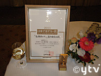 でも僕らスタッフとしては、受賞のために作品つくりを頑張っている訳ではないことはもちろんです。この時期は新作映画「名探偵コナン 沈黙の15分(クォーター)」のパブリシティの時期でもあります。つまり毎年、間もなく完成する新しい作品に対する意気込みを、重ねて確認できる素晴らしいタイミングでの吉報となっているのです。そんなわけで授賞式の行われたホテルの一室で、スタッフ全員大歓迎大感激の受賞パーティーを行うことが出来ました。冒頭の写真はそこでお披露目された賞状と受賞記念の盾とお花となぜか白ワインです。