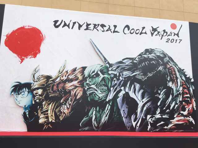 さて今年もいろいろありますよ「名探偵コナン」!まずは史上初めてのUSJとのビッグコラボがいよいよ1月13日金曜日からスタートしました。今回は「UNIVERSAL COOL JAPAN 2017」と題して、期間限定で6つの作品とUSJが見事にコラボレーション。「名探偵コナン」はその一つ、というわけ。で、6つと言うのは「ゴジラ」「エヴァンゲリオン」「進撃の巨人」「モンスターハンター」「戦国 ザ リアル大阪城」。もう今の日本を代表するそうそうたるコンテンツが並んじゃってます。
