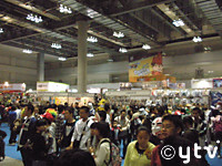 市の中心地から長江を渡った所にある巨大な建物で今回のイベントは行われていました。冒頭の写真の巨大な垂れ幕だけでもその規模がわかるでしょ。折りしも僕が訪れた10月1日は中国の祭日・国慶節にあたり、ティーンエイジャーのアニメファンのみならず、子供やお父さんお母さんらのファミリーのお客も目立ってました。冒頭あとの2枚の写真は会場の様子です。