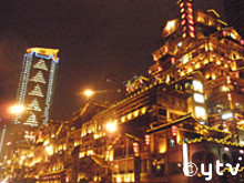 この2枚の写真は重慶の昔の町並みをシンボルにしたモニュメント。なぜか「ハウルの動く城」をほうふつとさせます。その川側に降りたところに建つ建物の夜景はまるで「千と千尋の神隠し」、奥の高層ビルとの対比が象徴的であります。3日目の午後からはさわやかな青空に覆われ、夜にはあまりの久しぶりに地元の人たちも驚くような星空が見られちゃいました。…今まで全く知らなかった重慶という街で大勢の日本のアニメファンに触れ、アニメにたずさわるひとりのスタッフとしての幸福を久しぶりに噛みしめることができた、今回はそんな原点回帰の旅になりました。