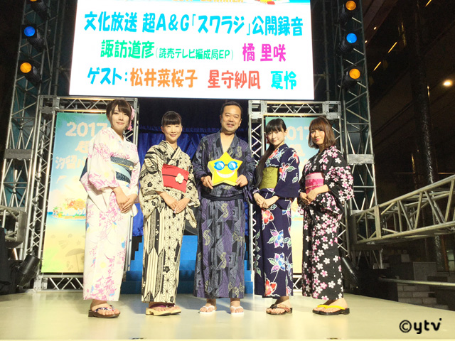 夏のイベントが続いています。まずは7月30日超汐留パラダイス!‐2017 SUMMERにおいての「スワラジ」公開録音においでいただいた方、本当にありがとうございました。暑い中、ボクはともかくステキな女性の浴衣姿をご覧いただけただけでも良かったかな、なんて…。アクシデントもありいろいろ初めての体験でしたが、おいでになったお客さまの応援のおかげもあって、とても楽しい収録が出来ました。本当にありがとうございました!