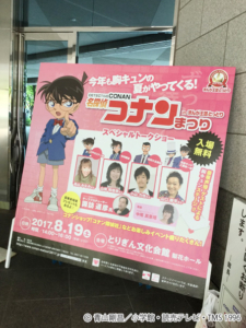 そしてその次の週は恒例、鳥取「名探偵コナンまつりinマンガ王国」であります。今年が5回目となったこのイベント、高山みなみさん、山崎和佳奈さん、小山力也さん、山口勝平さんの名探偵コナンファミリーが一堂に会するとあって、青山先生の故郷・鳥取が熱く燃える日となっています。今回の会場は鳥取市とりぎん文化会館・梨花ホール。手渡されたイベントプログラムは例年になく厚い冊子となっていました。