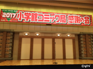 そして13日には小学館主催「2017小学館コミック局 感謝の会」こちらは小学館の全コミック誌が一致団結してマンガ家さんやスタッフさんたちに感謝を届ける会。年に一度ここでしか会えない方も多く、歩くのもままならないほどの混雑した会場を一周すると本当に懐かしい面々にご挨拶できます。さらに2次会は各誌に分かれ、こちらはビンゴ大会などにぎやかで楽しいイベントで埋め尽くされ、みんなそれぞれの年末気分を味わっていました。何人かのコナンスタッフが3次会、いや4次会まで行ったメンバーがいることはナイショです(笑)。